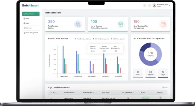 An Ai-enabled partner, streamlining pharmaceutical manufacturing by analysing Batch Manufacturing Record (BMR). BatchSmart accelerates batch releases, reduces errors, and provides real-time dashboards for improved decision-making, regulatory compliance, and operational efficiency.